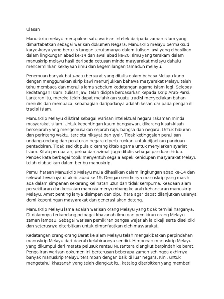 Manuskrip Tertua Dalam Tamadun Melayu The Patriots