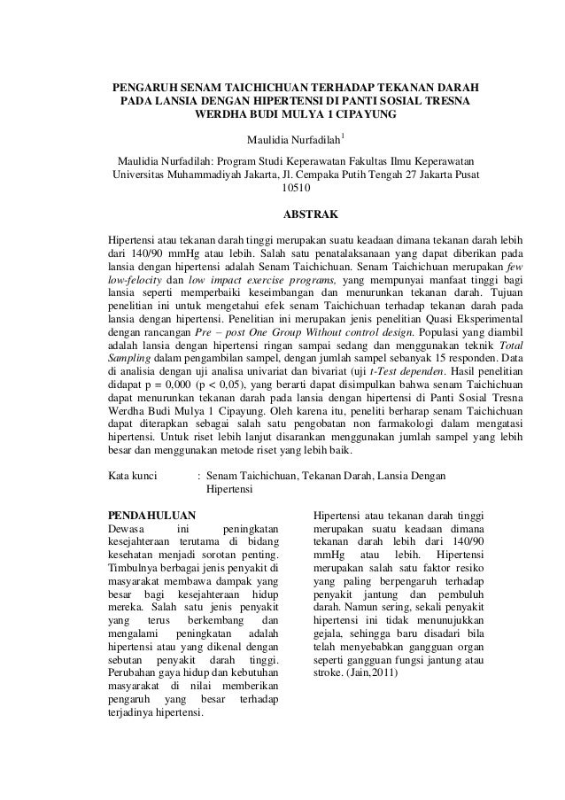 Pengaruh Senam Taichichuan Terhadap Tekanan Darah Pada Lansia Dengan